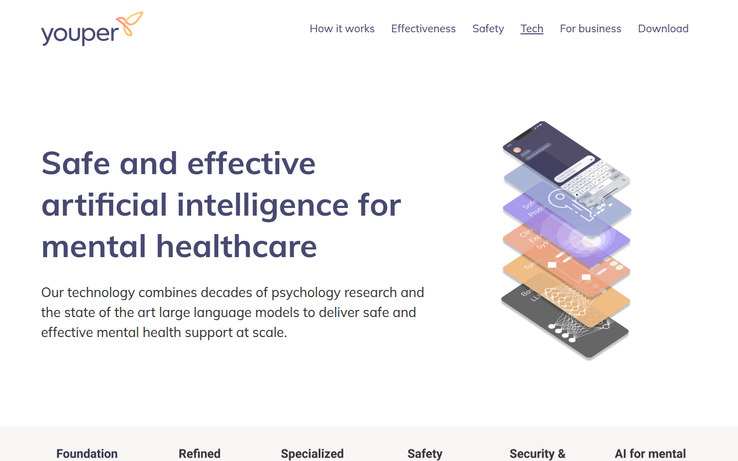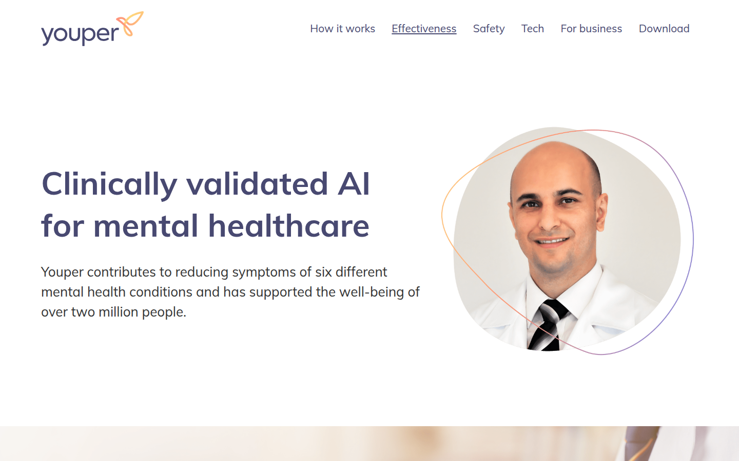 Youper's solution has been clinically validated by researchers at Stanford University, proving effective at reducing symptoms of anxiety and depression. The platform utilizes cognitive behavioral therapy techniques and has been identified by the Journal of the American Medical Association as the most engaging digital health solution for anxiety and depression. The company serves multiple stakeholders including patients, healthcare providers, employers, payers, and life science companies, helping them scale mental healthcare services and make support more accessible.